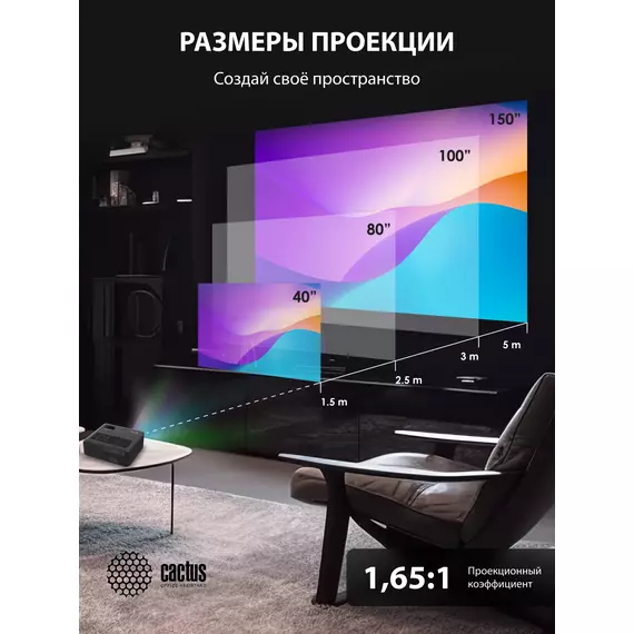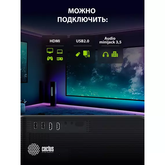 Проектор Cactus CS-PRM.01B Full HD LCD 700Lm ANSI (1920x1080) 2500:1 ресурс лампы:50000 часов 2xUSB typeA 2xHDMI 1.8кг RTL [CS-PRM.01B.WUXGA]