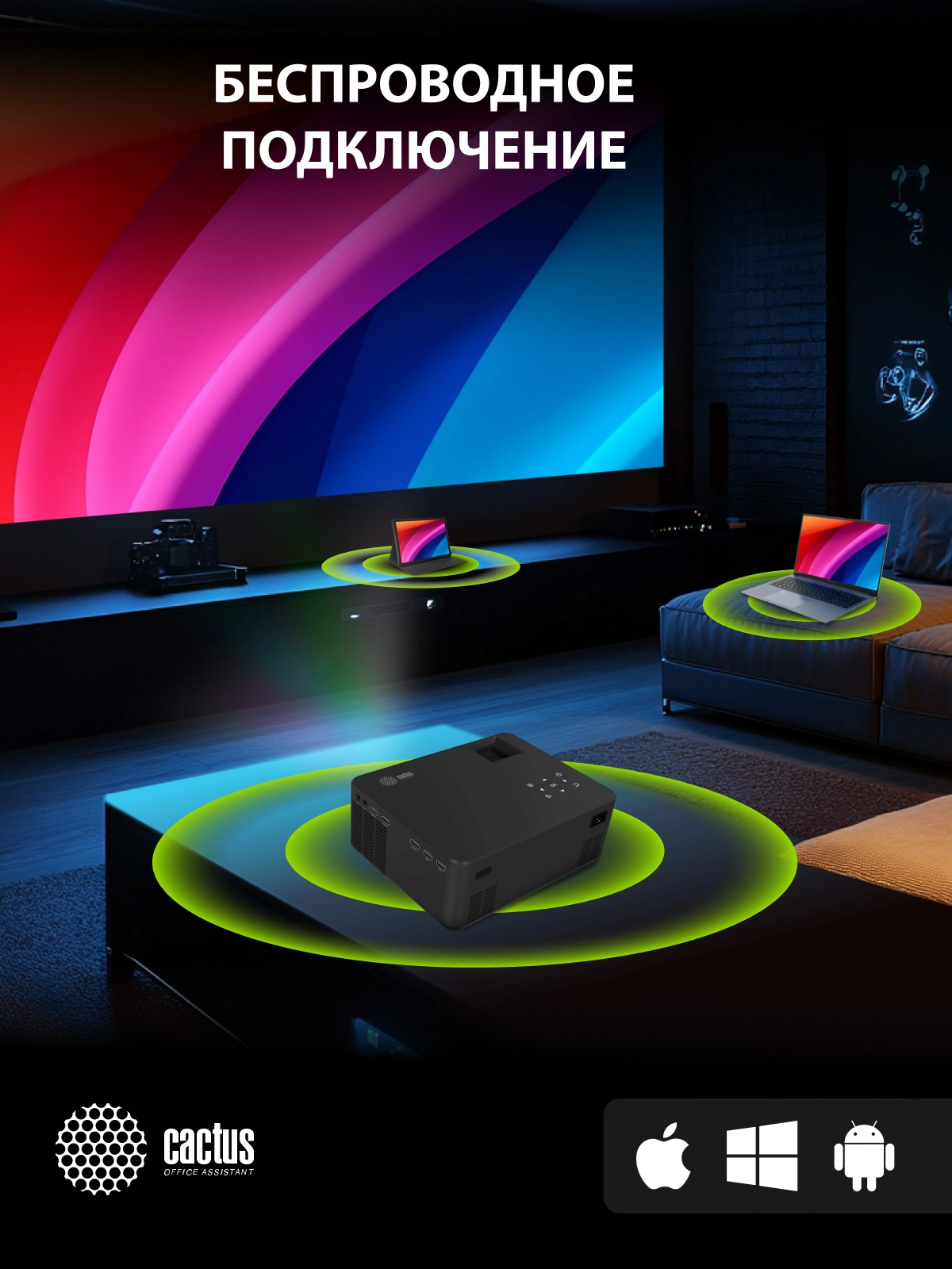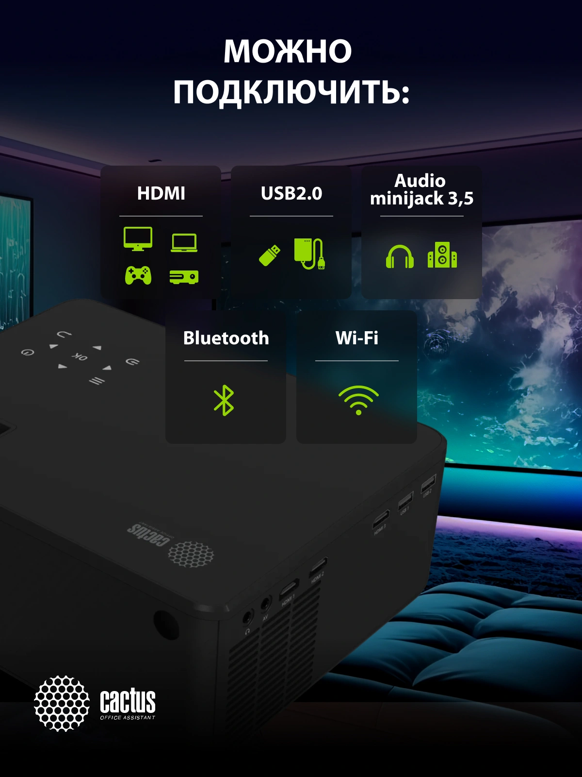 Проектор Cactus CS-PRM.04B.WUXGA-A LCD 6400Lm LS 400Lm ANSI (1920x1080) 2000:1 ресурс лампы:50000часов 2xUSB typeA 3xHDMI 2.5кг