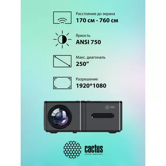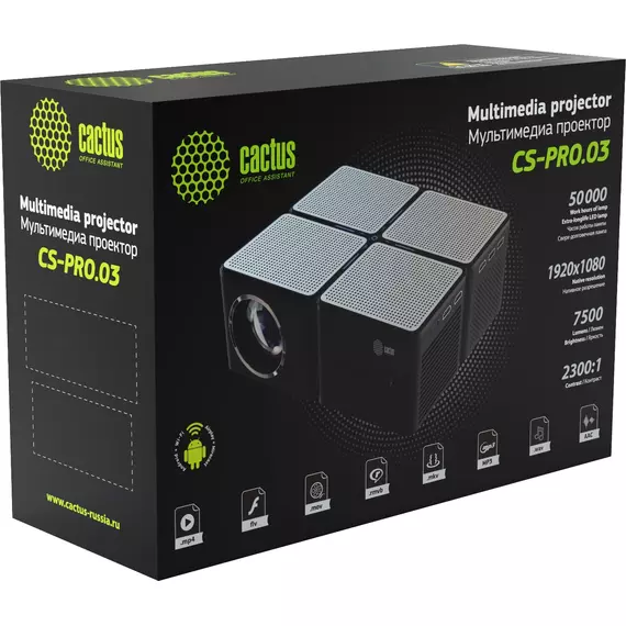 Проектор Cactus CS-PRO.03B.WUXGA-A LCD, 7500Lm, 750Lm ANSI, 1920x1080, 2300:1, 30000 ч, 2xUSB, 3xHDMI, 1.73кг