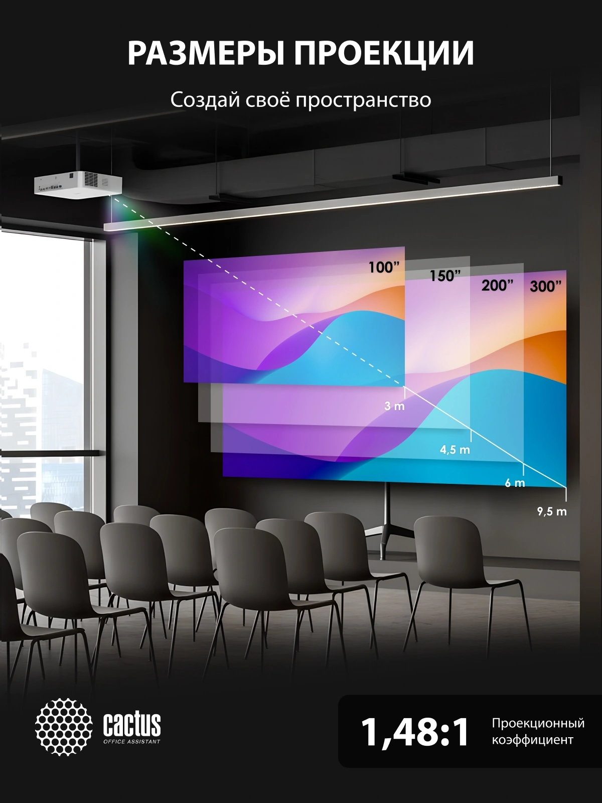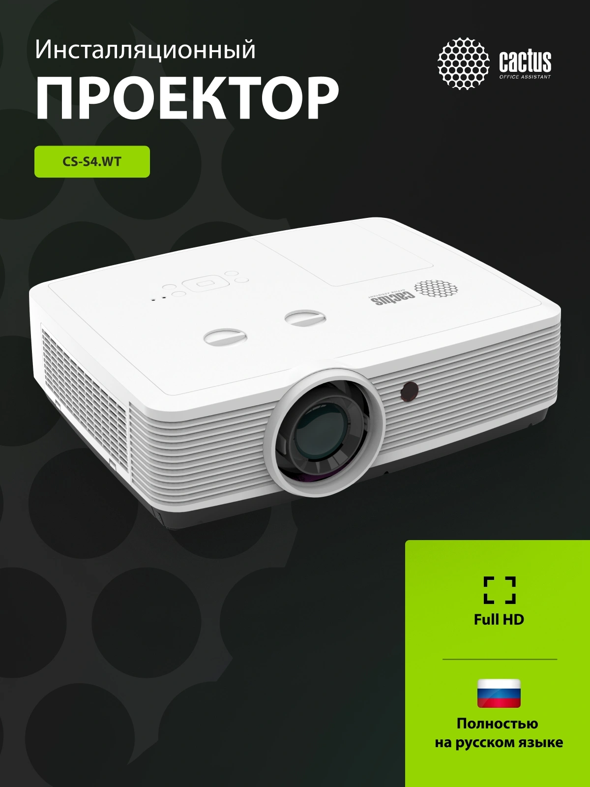 Проектор Cactus CS-S4.WT Bright 3LCD 94400Lm LS 5900Lm ANSI (1920x1200) 30000:1 ресурс лампы:10000часов 1xUSB typeA 1xUSB typeB 2xHDMI 4.45кг