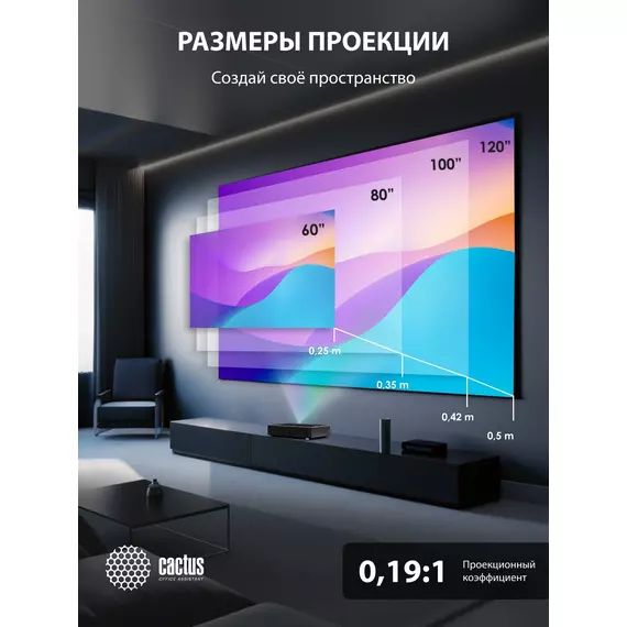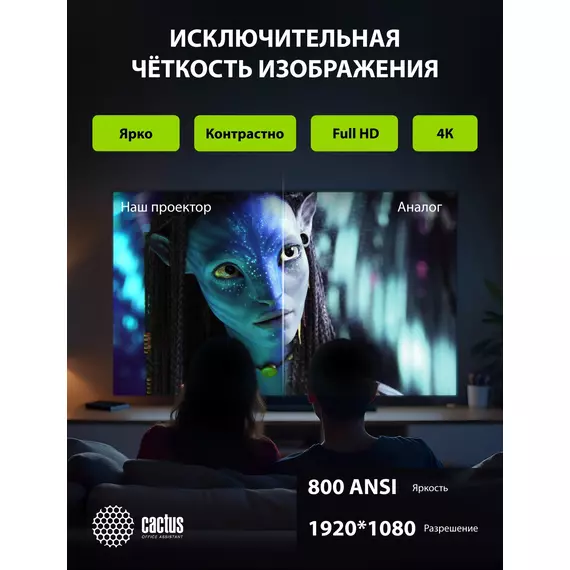 Проектор Cactus CS-U2.B DLP 19000Lm LS 800Lm ANSI (1920x1080) 15000:1 ресурс лампы:50000часов 2xUSB typeA 2xHDMI 1.78кг