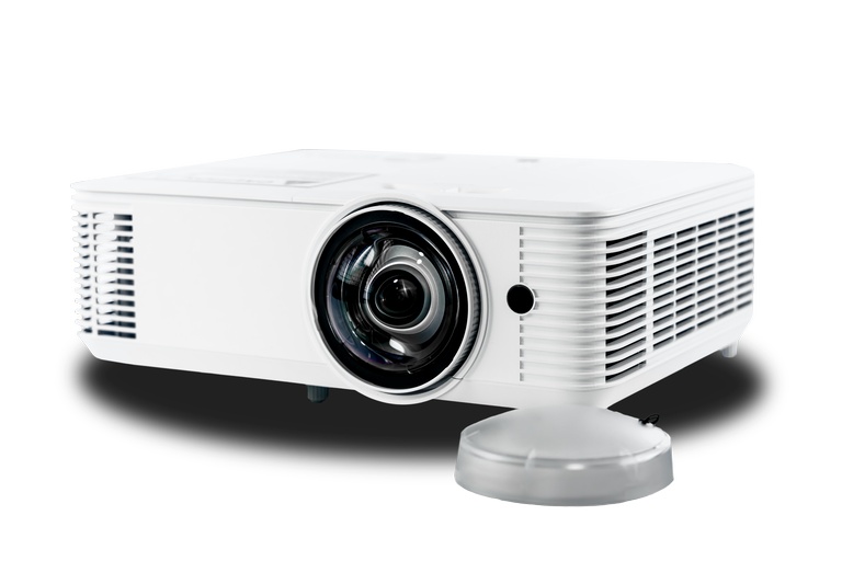 - Короткофокусный объектив 0.621:1. Проектор идеально подходит для учебных классов и небольших конференц-залов. Максимальная гибкость при установке и наличие короткофокусного объектива позволяет располагать проектор на небольшом расстояние от экрана или интерактивной доски, что позволяет исключить попадание света от луча проектора в глаза докладчика и появления тени в зоне проецирования.