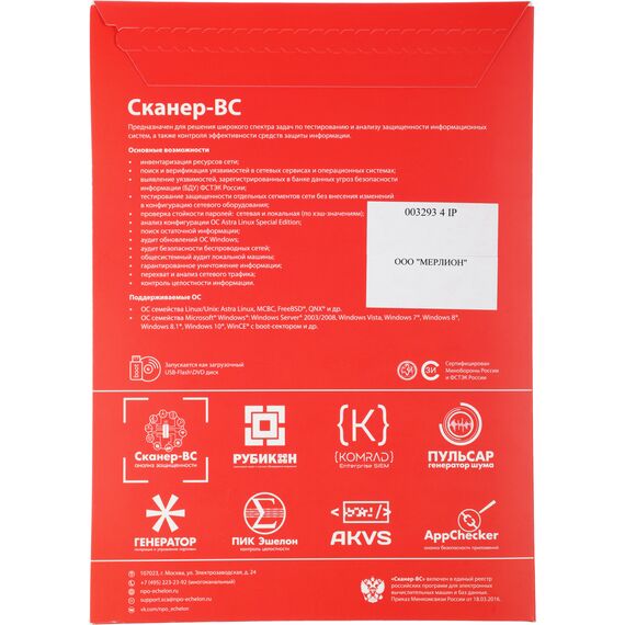 Средство анализа защищенности Эшелон Сканер-ВС лицензия на 4 IP на 1 год [SCANER-VS-5-04-F]