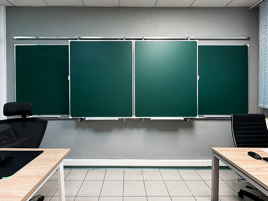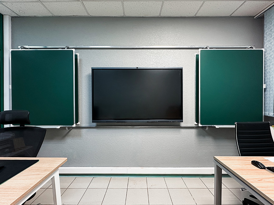 Рельсовые системы подходят для разных типов учебных пространств — от школьного класса до корпоративного зала.