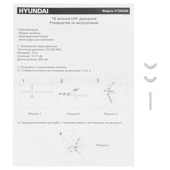 Антенна телевизионная Hyundai H-TAE260 13дБ пассивная серебристый