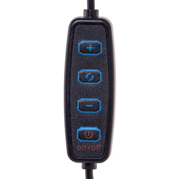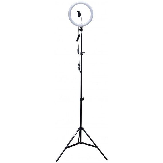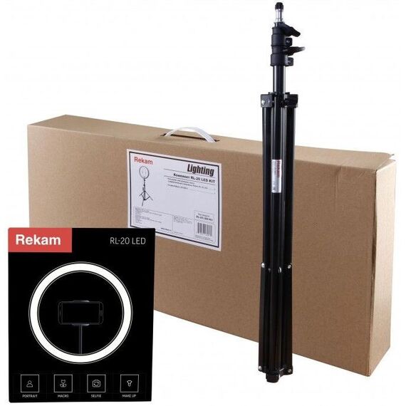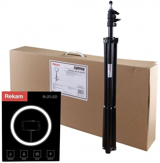 | Комплектация | Кольцевая светодиодная лампа. Шнур питания с пультом и USB-разъёмом. Держатель для смартфона. Гибкое шарнирное крепление (Goose neck). Крепление на стойку (штатив) с интегрированной шаровой головой.. Винт регулировки угла наклона лампы. Студийная стойка REKAM LS3?200?2 (75-200 см). Инструкция. |