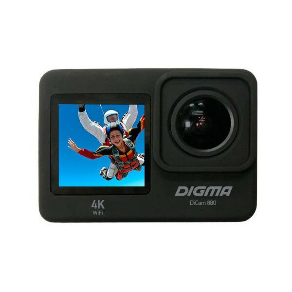 Экшн-камера Digma DiCam 880 внешний микрофон/пульт ДУ, 4K, WiFi, черный