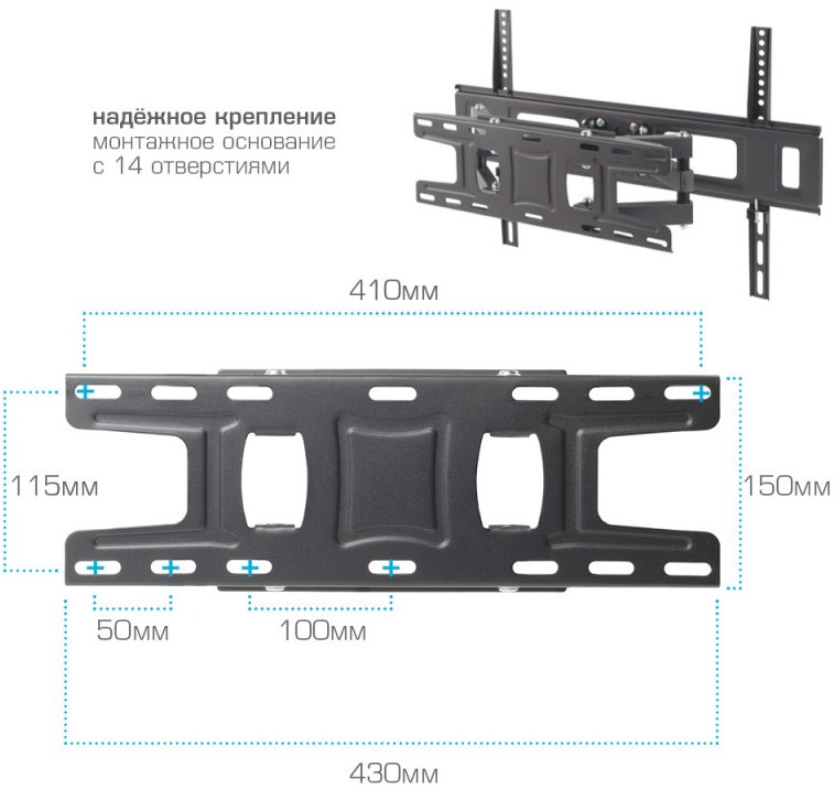 - Кронштейн подходит для большинства телевизоров популярных брендов, таких как Samsung, LG, Sony, Panasonic, Sharp, Toshiba, KIVI, Xiaomi Mi, SUPRA, Hyundai, Erisson, Horizont, JVC, Thomson, HAIER, BBK, Витязь, Веко, BQ, OZON, SkyLine, Pioneer, Philips, Rolsen, Harper, Hisense, Hitachi, Polarline, Prestigio и других