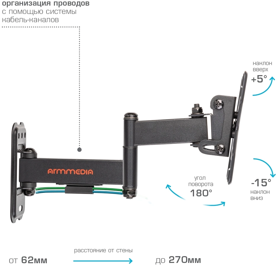Кронштейн для телевизора ARM Media MARS-6 черный 10"-32" макс.25кг настенный поворотно-выдвижной и наклонный [90716]