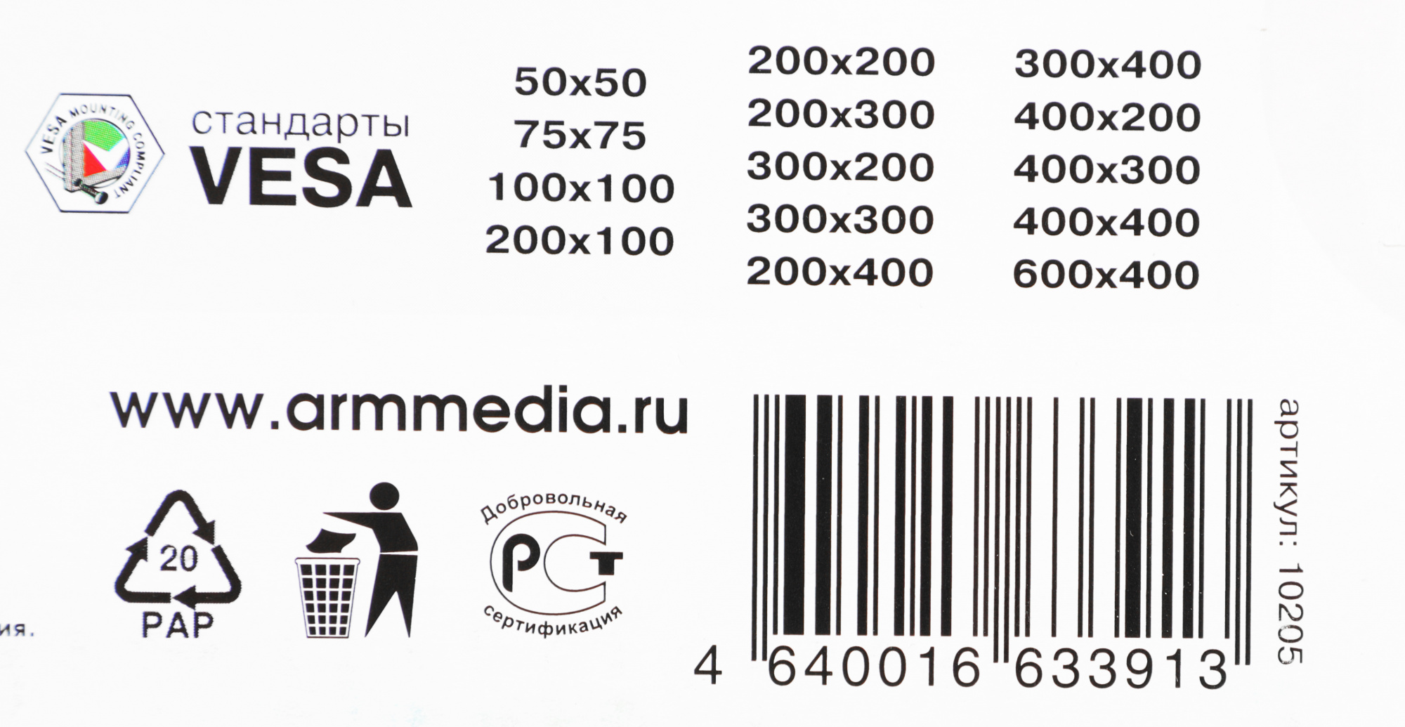 | Стандарт VESA | VESA MIS-D, VESA MIS-E, VESA MIS-F |