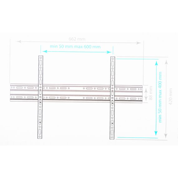 Фиксированный кронштейн для телевизоров с диагональю 32-90 дюймов, весом до 55 кг. Расстояние от стены - 20 мм. Max VESA 600*400.