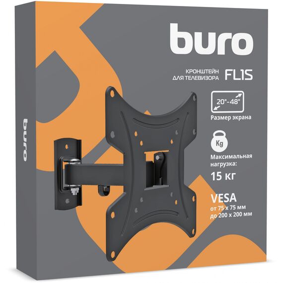 Кронштейн для телевизора BURO FL1S черный 20"-48" макс.15кг настенный поворот и наклон [BM15A72TS2]