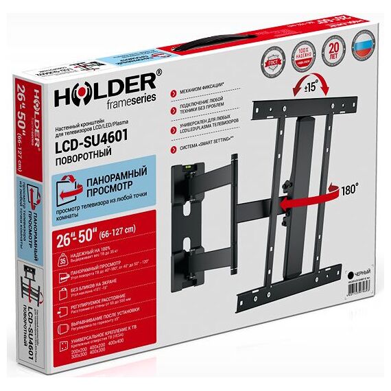 Кронштейн для телевизора Holder LCD-SU4601-B черный 26"-50" макс.35кг настенный поворот