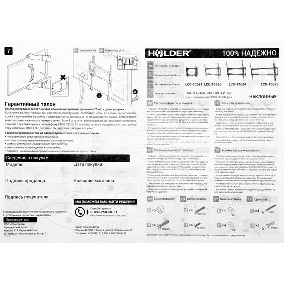 Кронштейн для телевизора Holder LCD-T6628-B черный 32"-70" макс.40кг настенный наклон