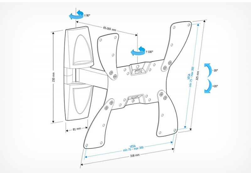 - Угол наклона и поворота ТВ меняется движением одной руки