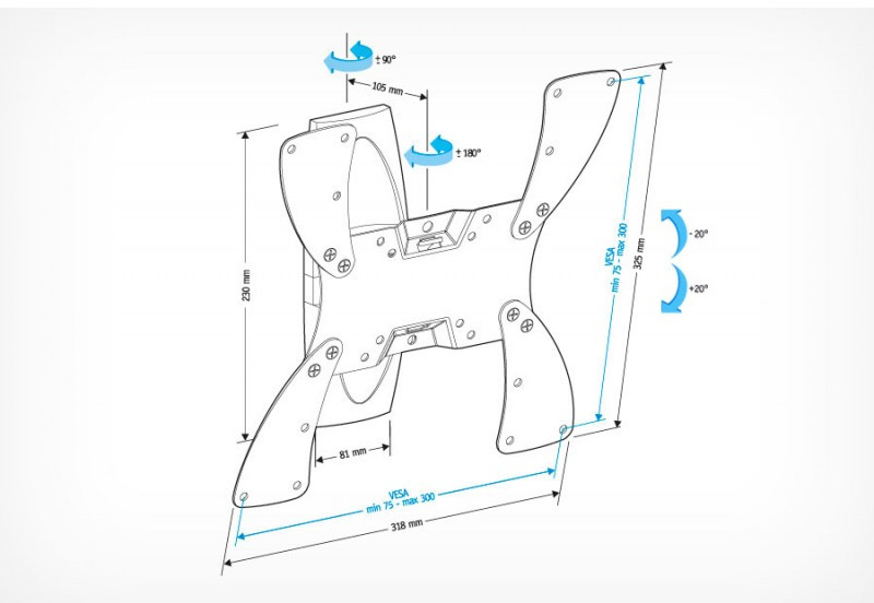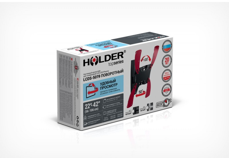 - Угол наклона и поворота ТВ меняется движением одной руки