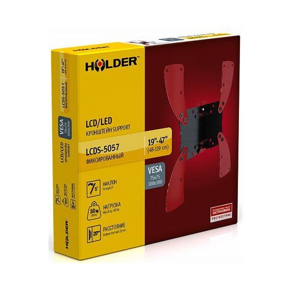 Кронштейн для телевизора Holder LCDS-5057 черный глянец 19"-47" макс.30кг настенный наклон