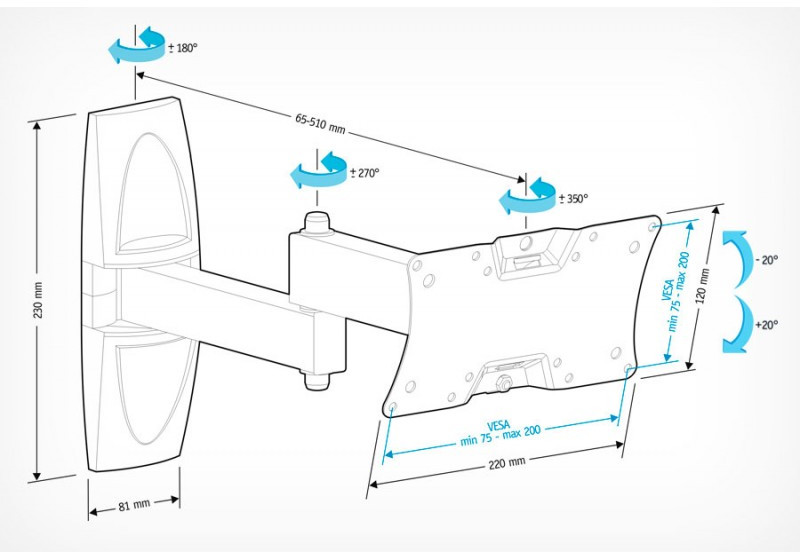 - Крепежные отверстия 75х75, 100х100, 200х100 мм