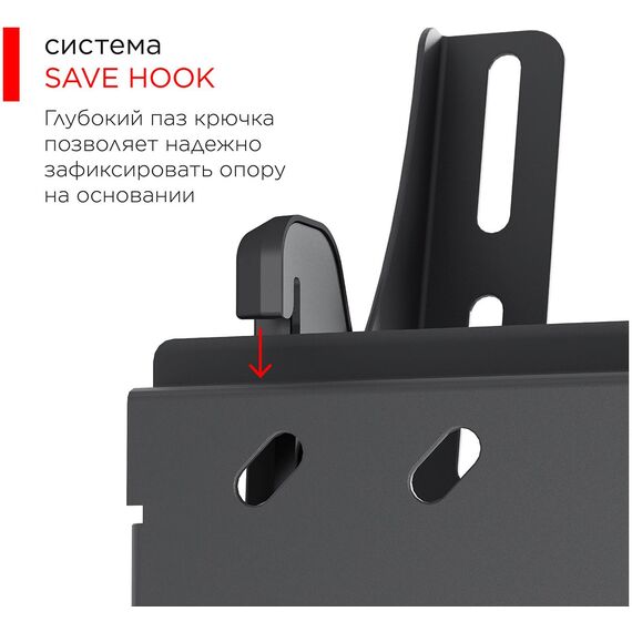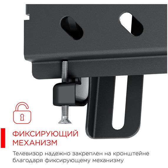 | Особенности | фиксирующий механизм надежно удерживает телевизор. основание кронштейна можно выровнять по горизонту благодаря крепежным отверстиям специальной формы. угол наклона регулируется без использования инструментов. |