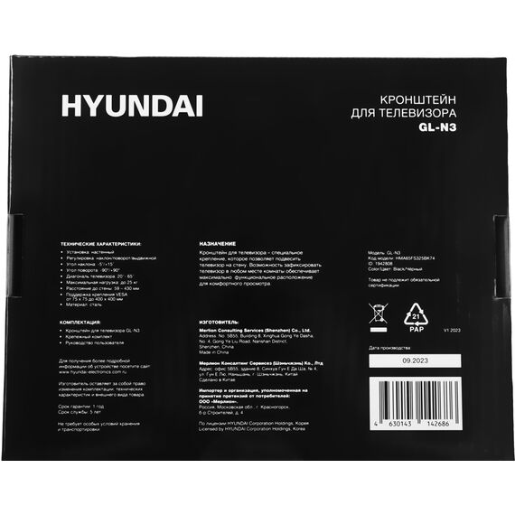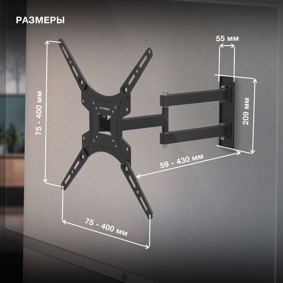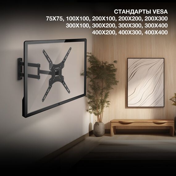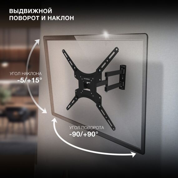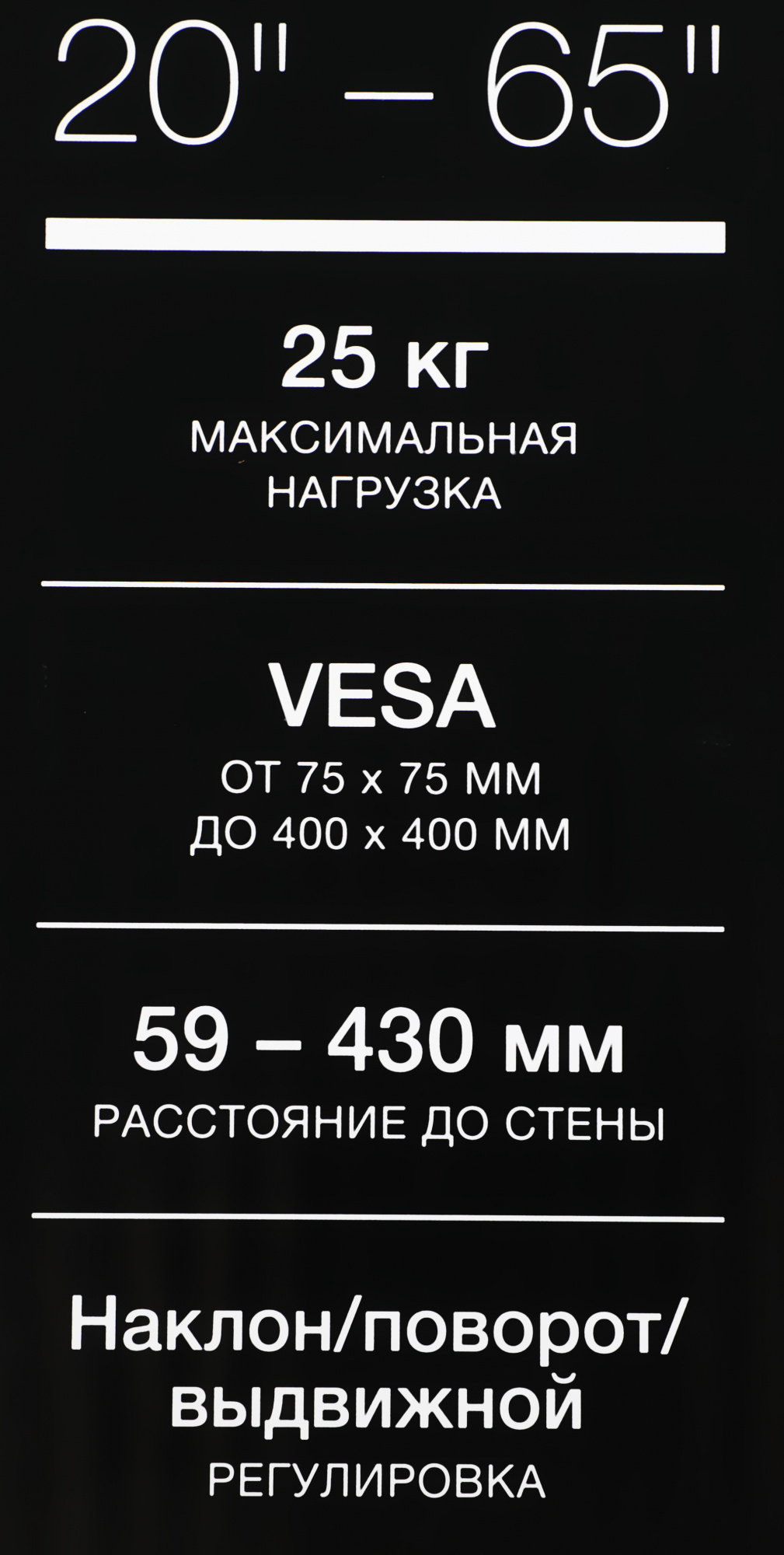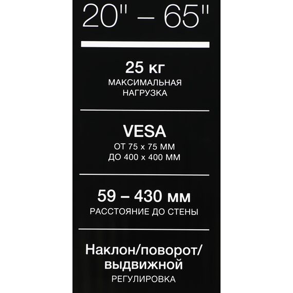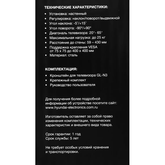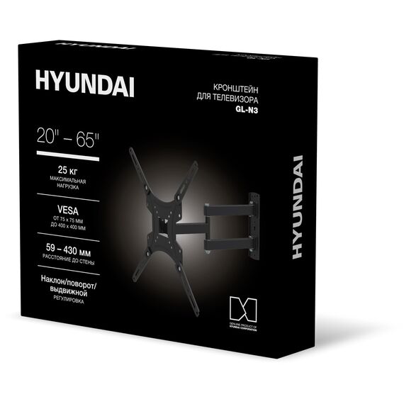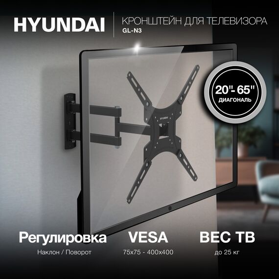 Кронштейн для телевизора Hyundai GL-N3 черный 20"-65" макс.25кг настенный поворотно-выдвижной и наклонный [HMA65FS325BK74]
