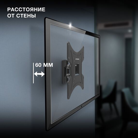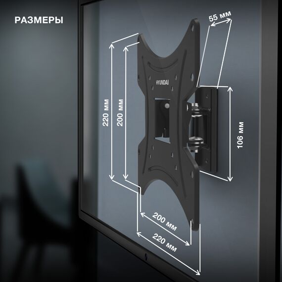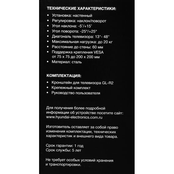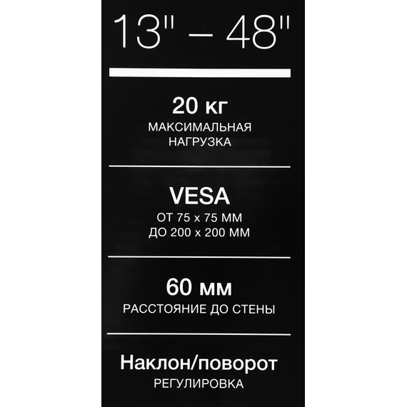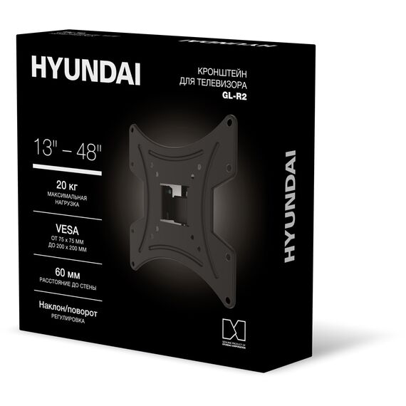 Кронштейн для телевизора Hyundai GL-R2 черный 13"-48" макс.20кг настенный поворот и наклон [HMA48FS120BK72]