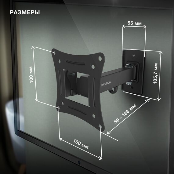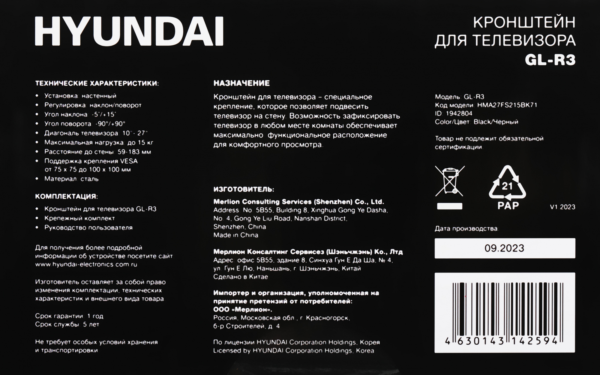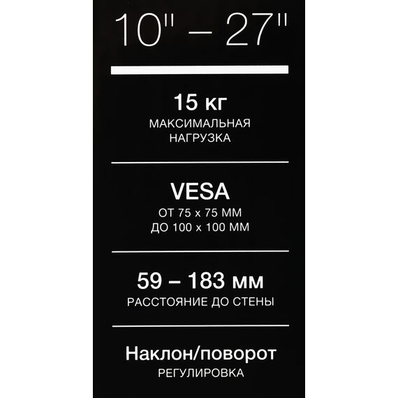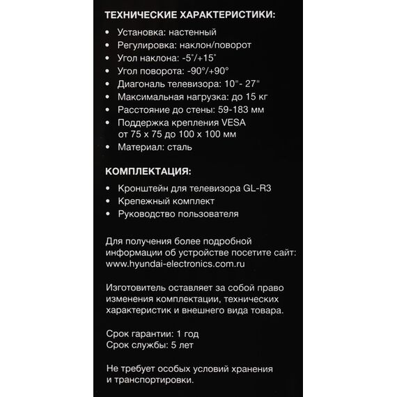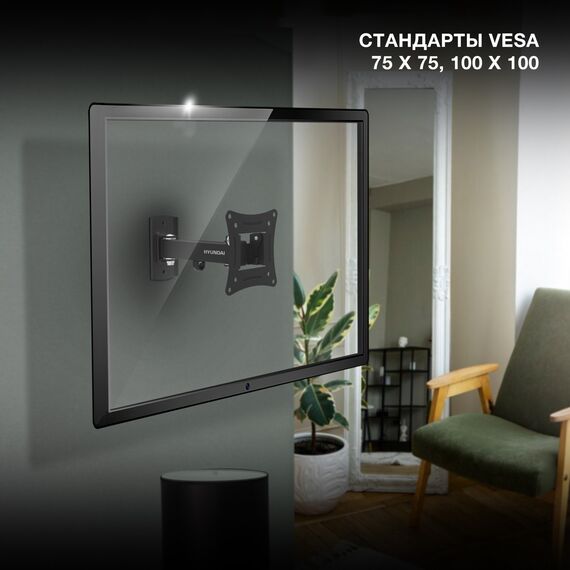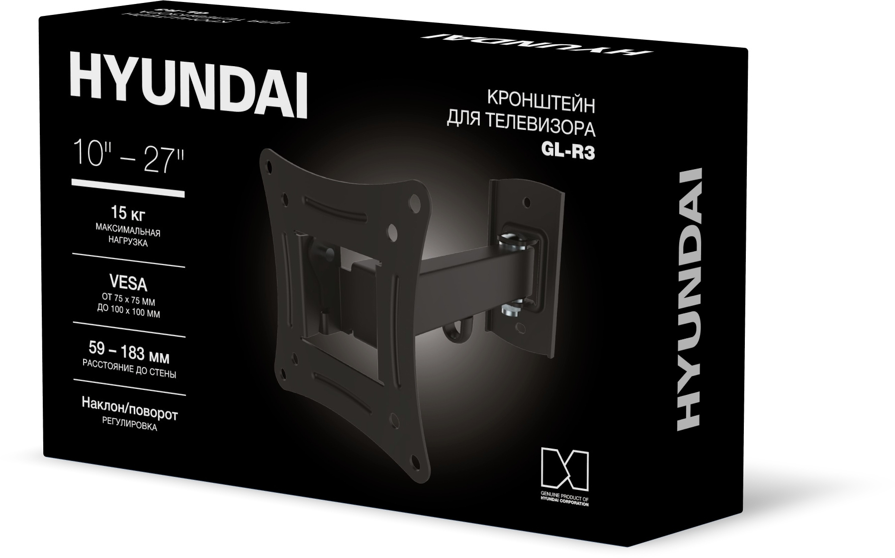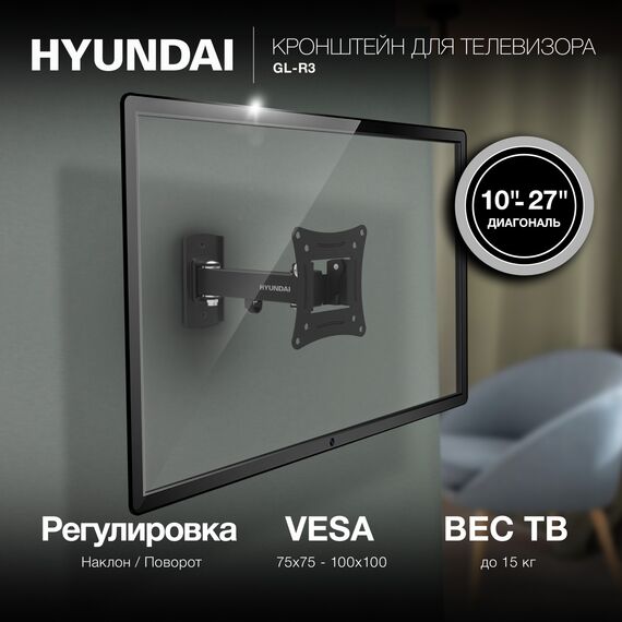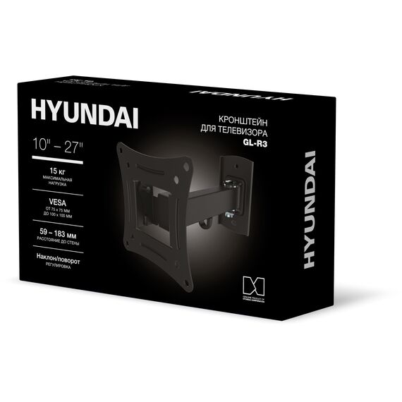 Кронштейн для телевизора Hyundai GL-R3 черный 10"-27" макс.15кг настенный поворот и наклон [HMA27FS215BK71]