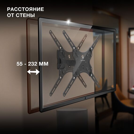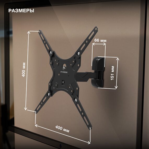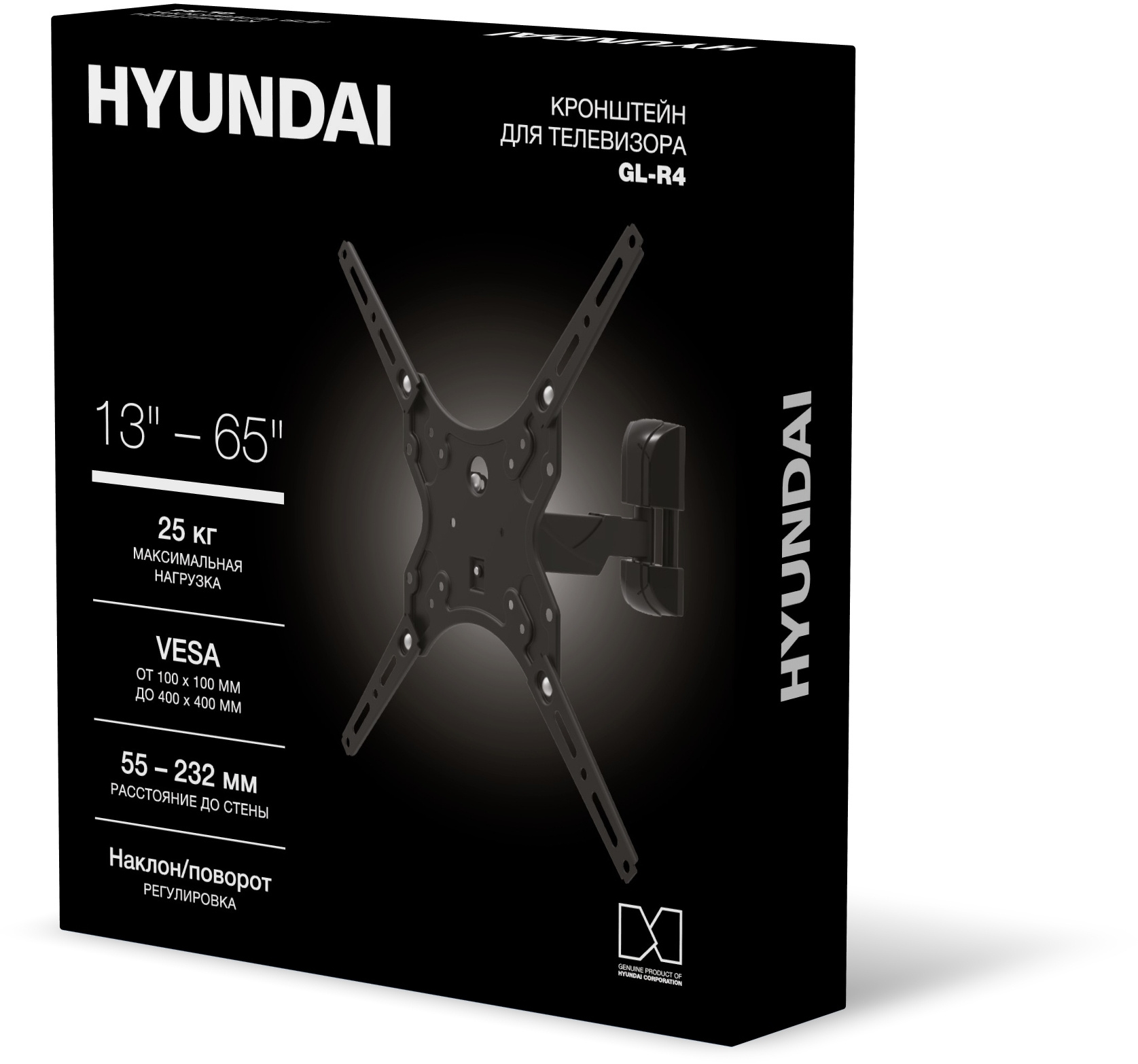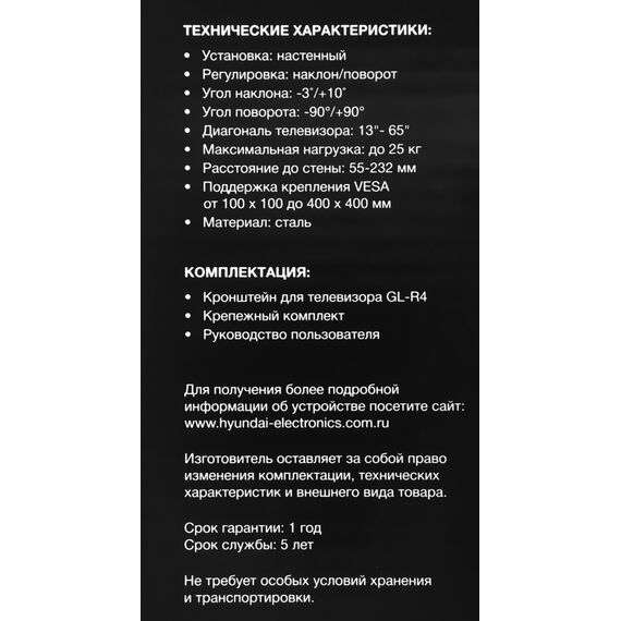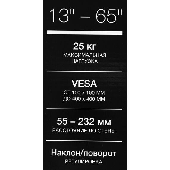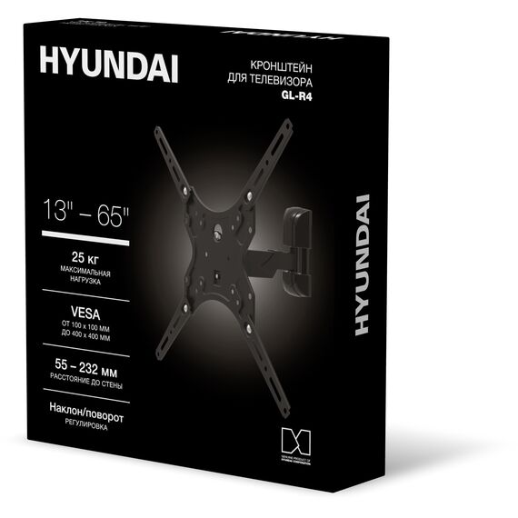 Кронштейн для телевизора Hyundai GL-R4 черный 13"-65" макс.25кг настенный поворот и наклон [HMA65FS225BK14]