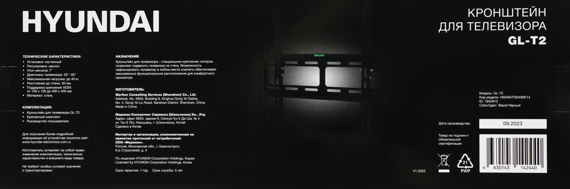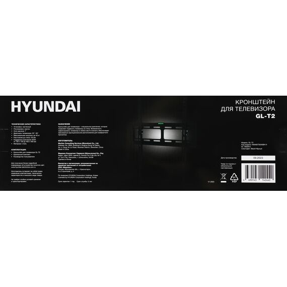 Кронштейн для телевизора Hyundai GL-T2 черный 32"-65" макс.40кг настенный наклон [HMA65TS040BK14]