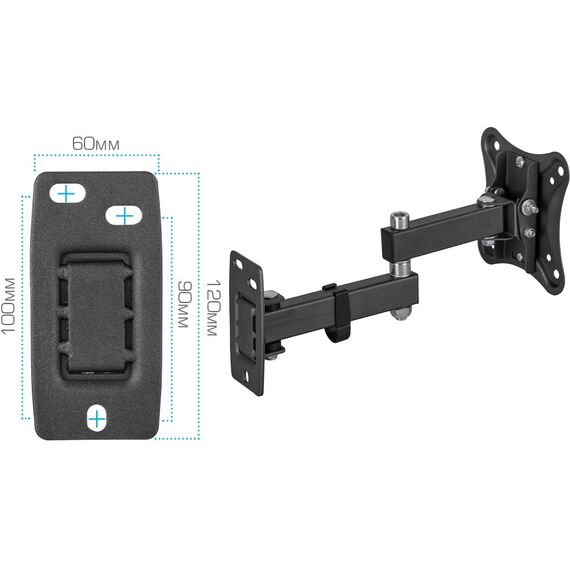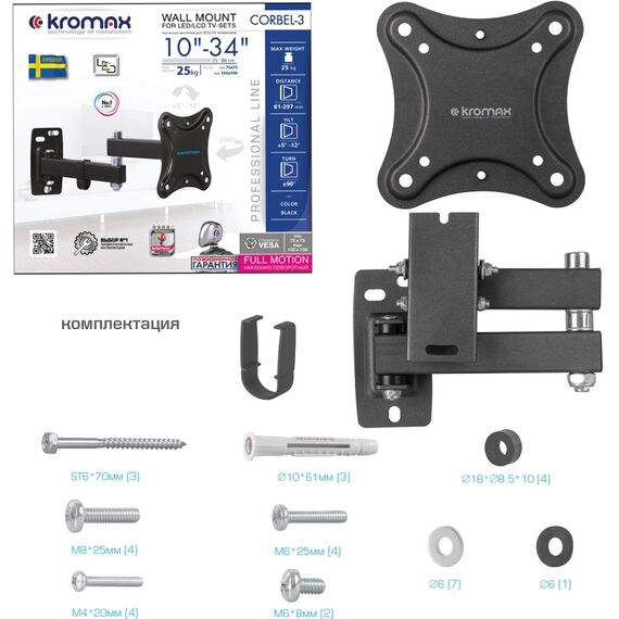 Кронштейн для телевизора Kromax CORBEL-3 черный 10"-32" макс.25кг настенный поворот и наклон [90463]