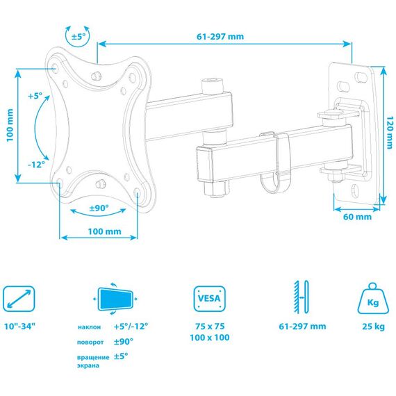 | Поддержка крепления VESA | 100x100, 75x75 |