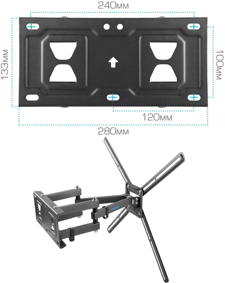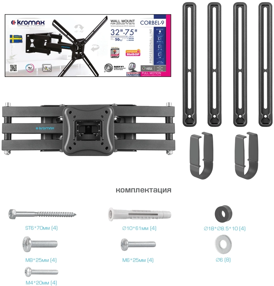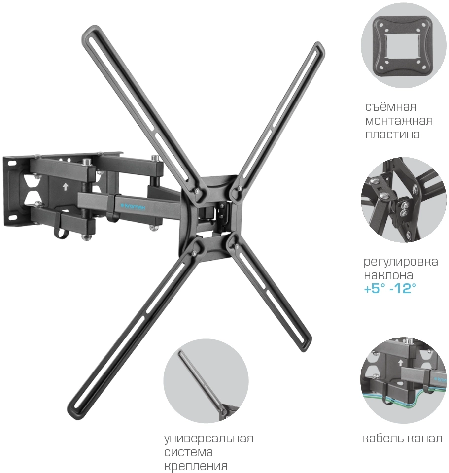 Кронштейн для телевизора Kromax CORBEL-9 титан 32"-75" макс.55кг настенный поворот и наклон [90593]