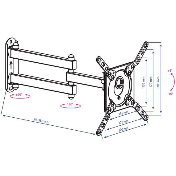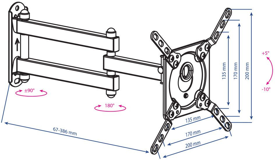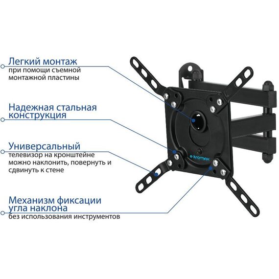 | Особенности | Легкий монтаж при помощи съемной монтажной пластины, надежная стальная конструкция, механизм фиксации угла наклона - без использования инструментов. |