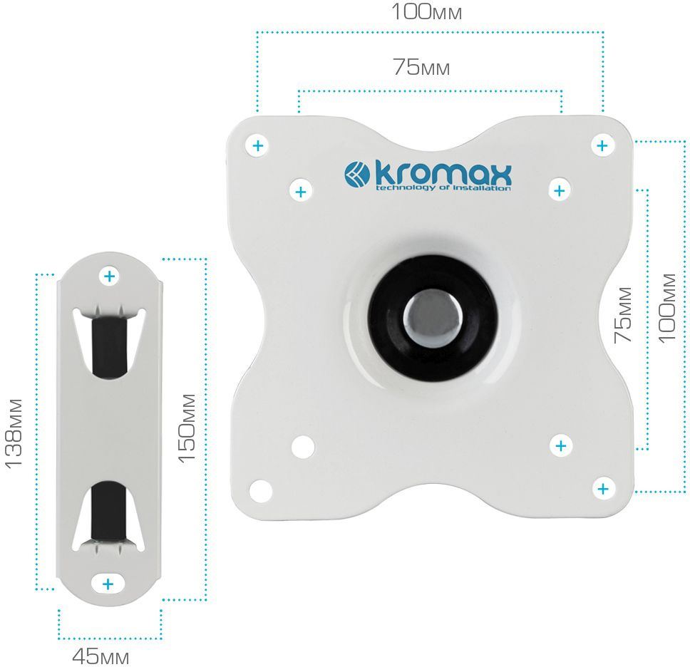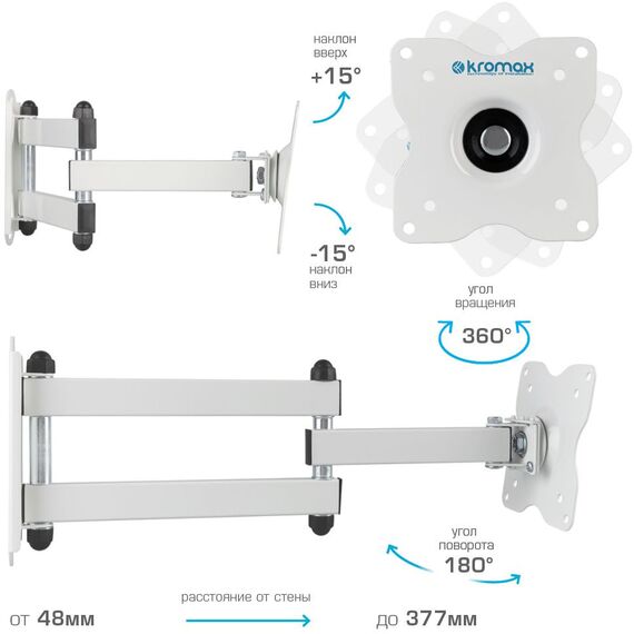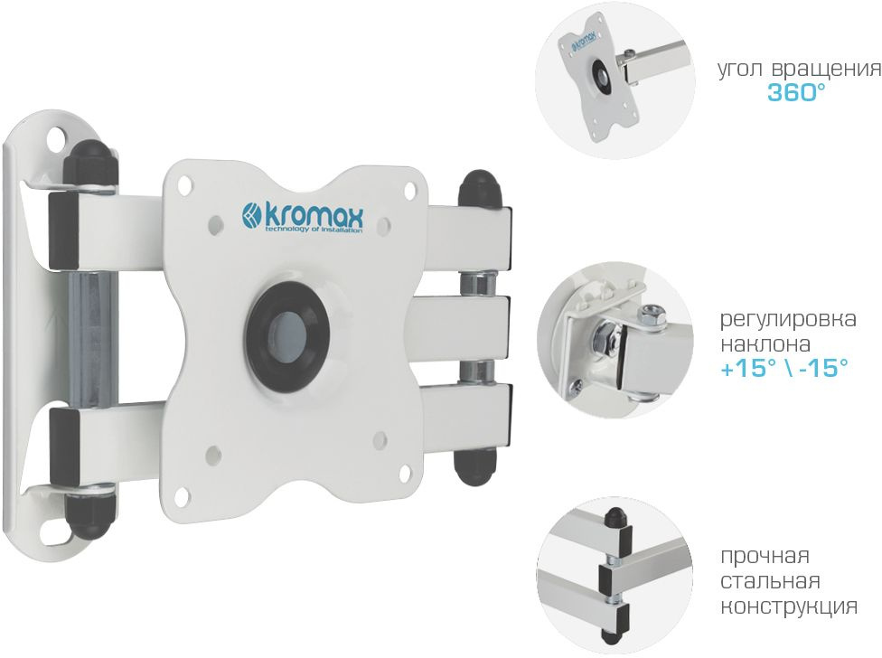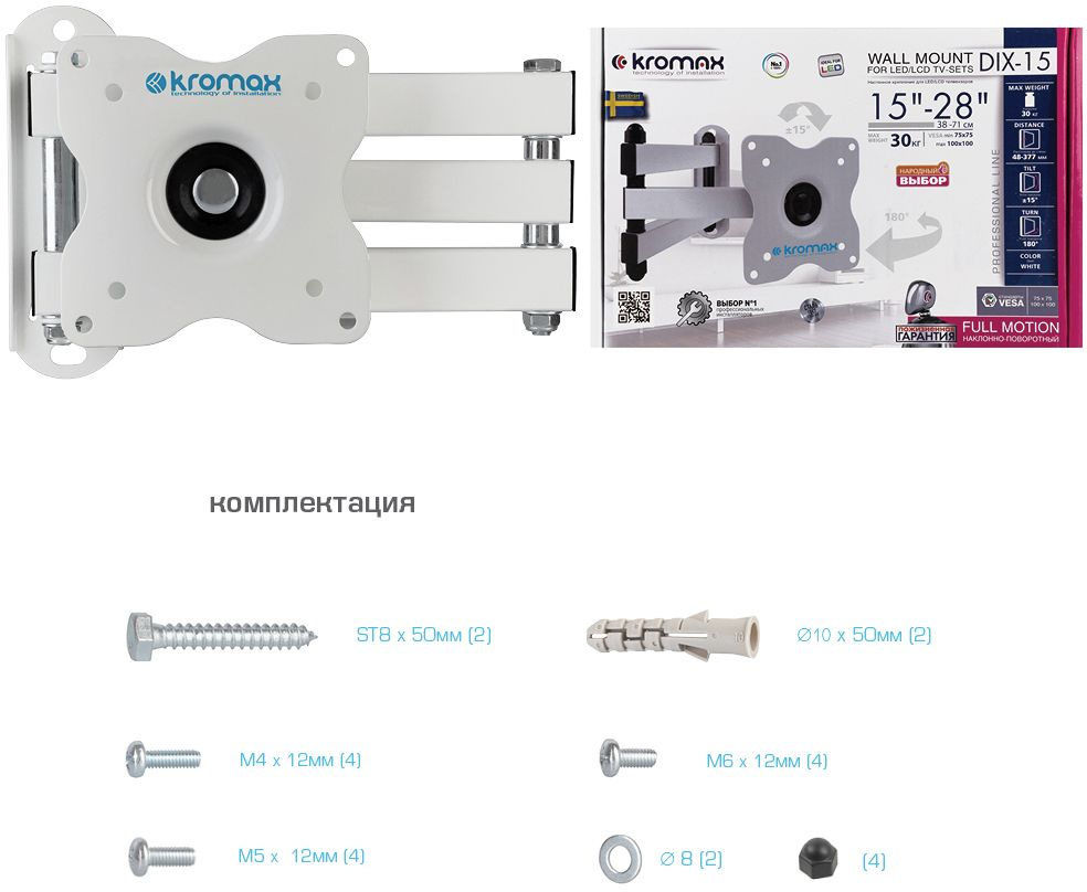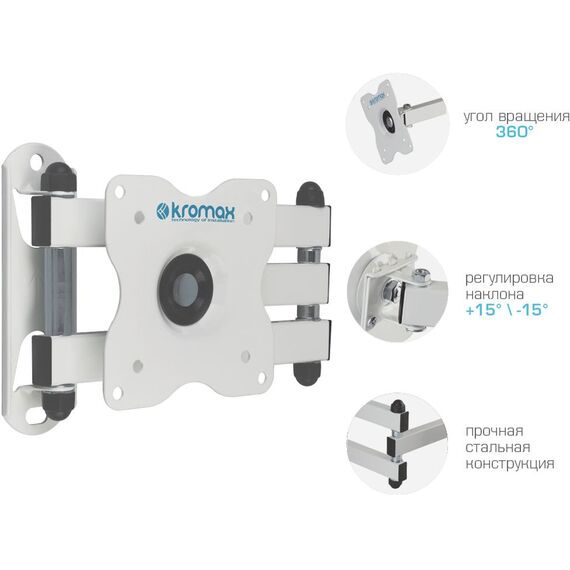 Кронштейн для телевизора Kromax DIX-15W белый 15"-28" макс.30кг настенный поворот и наклон [20224]