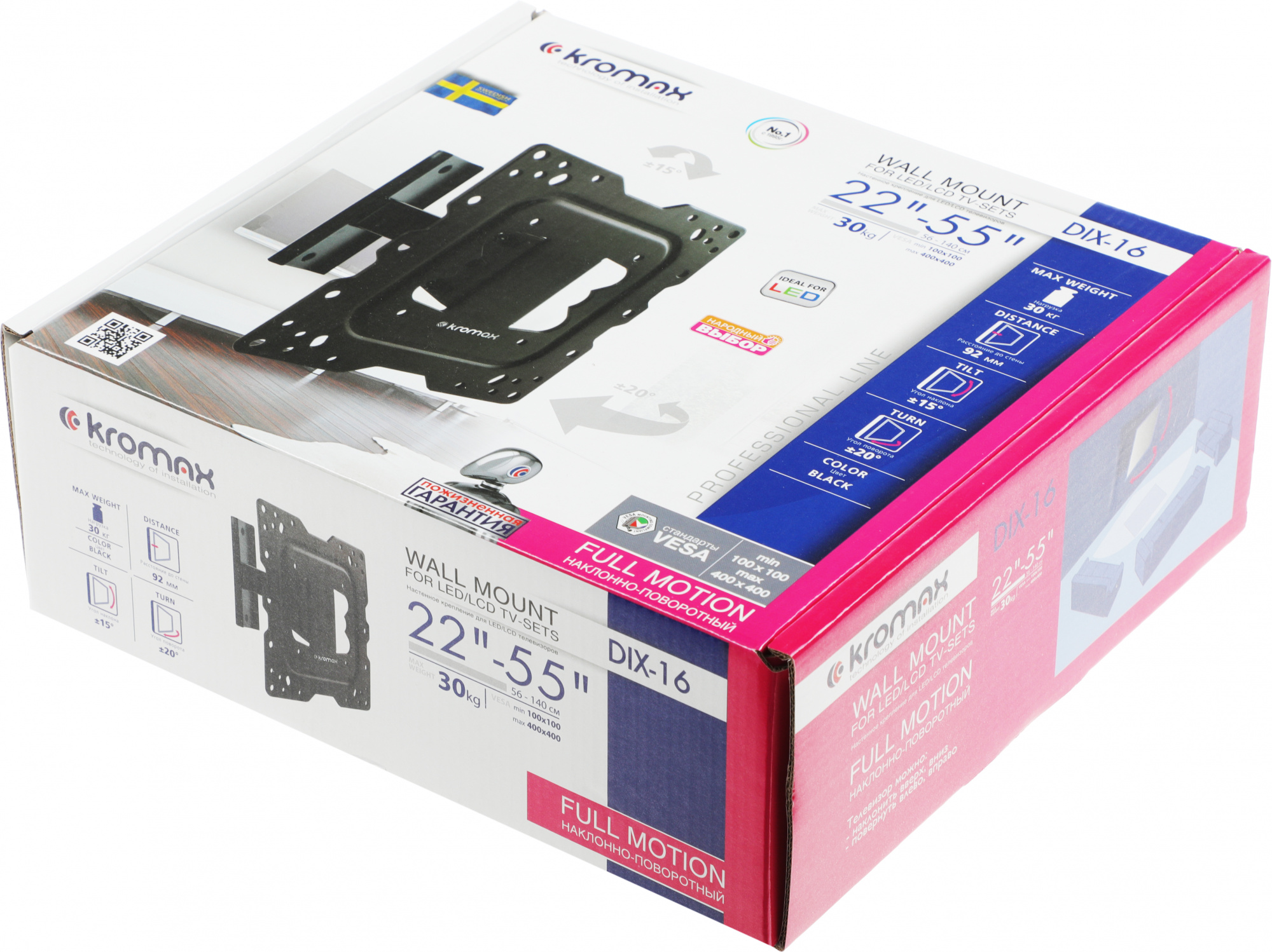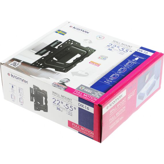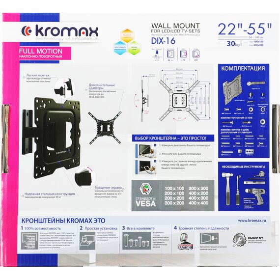 Кронштейн для телевизора Kromax DIX-16 черный 22"-55" макс.30кг настенный поворот и наклон [20204]