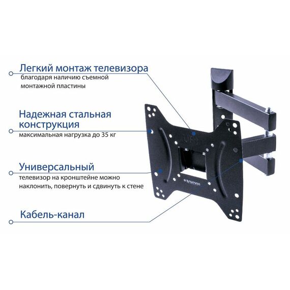 Кронштейн для телевизора Kromax DIX-22 черный 15"-48" макс.35кг настенный поворотно-выдвижной и наклонный [28013]