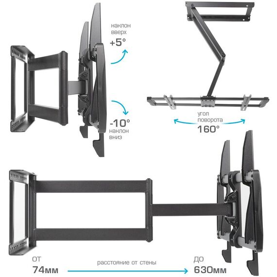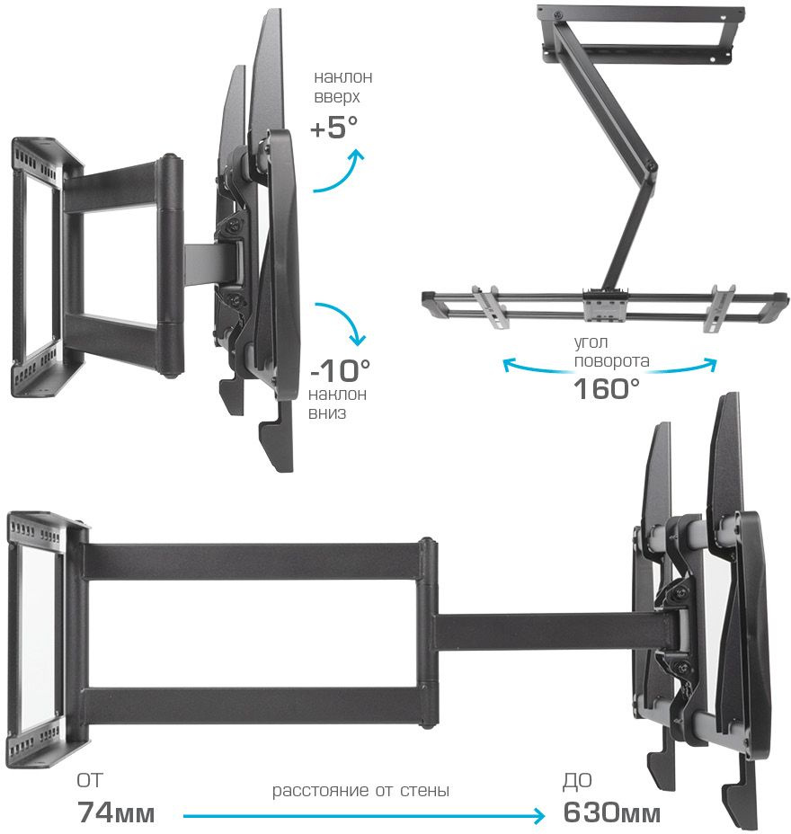 | Подходит для телевизоров c диагональю | 32", 37", 39", 40", 42", 43", 46", 48", 50", 52", 55", 60", 65", 70", 75", 85" |