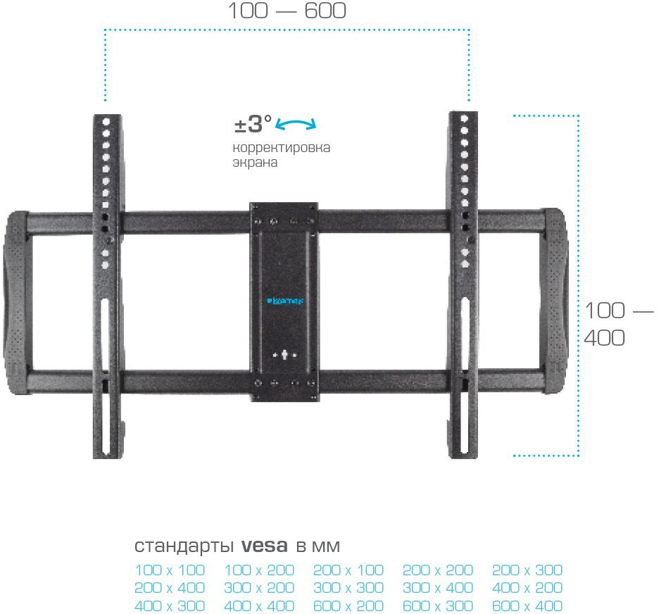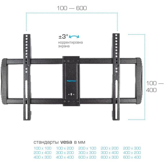 | Поддержка крепления VESA | 200x100, 200x200, 200x300, 300x200, 300x300, 400x200, 400x300, 400x400, 600x400 |