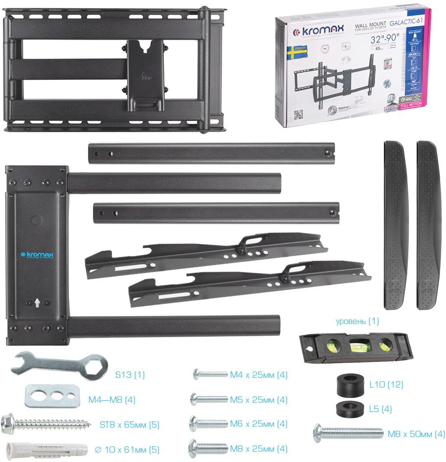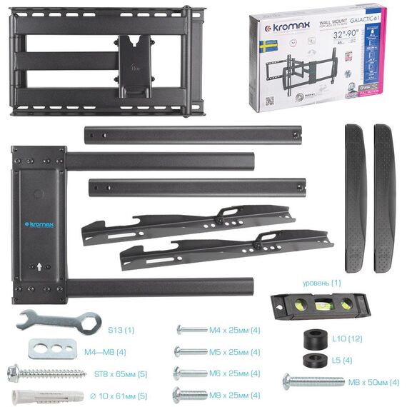 Кронштейн для телевизора Kromax GALACTIC-61 черный 32"-90" макс.45кг настенный поворот и наклон [90217]