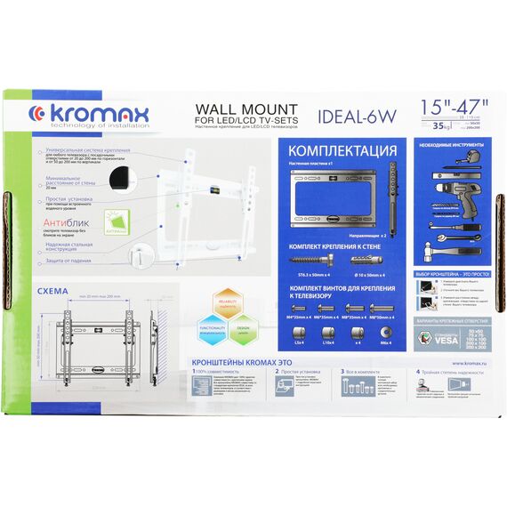 Кронштейн для телевизора Kromax IDEAL-6 белый 15"-47" макс.35кг настенный наклон [26022]