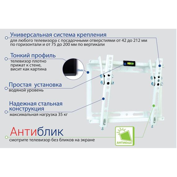 | Подходит для телевизоров c диагональю | 15", 19", 22", 24", 26", 28", 32", 37", 39", 40", 42", 46" |