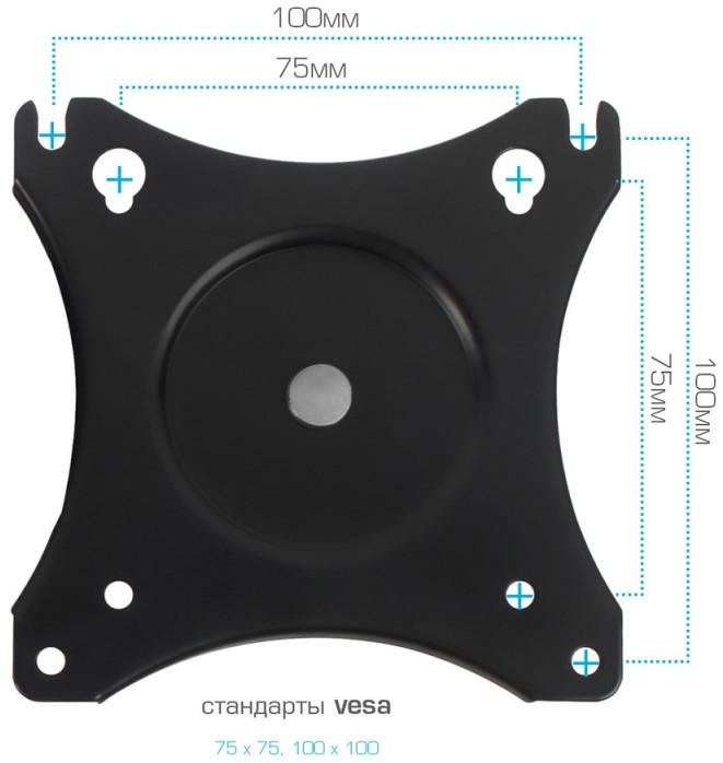 - Крепление монитора или телевизора к стене: VESA 75 x 75, VESA 100 x 100