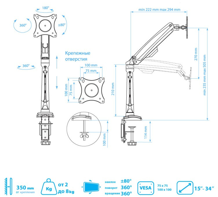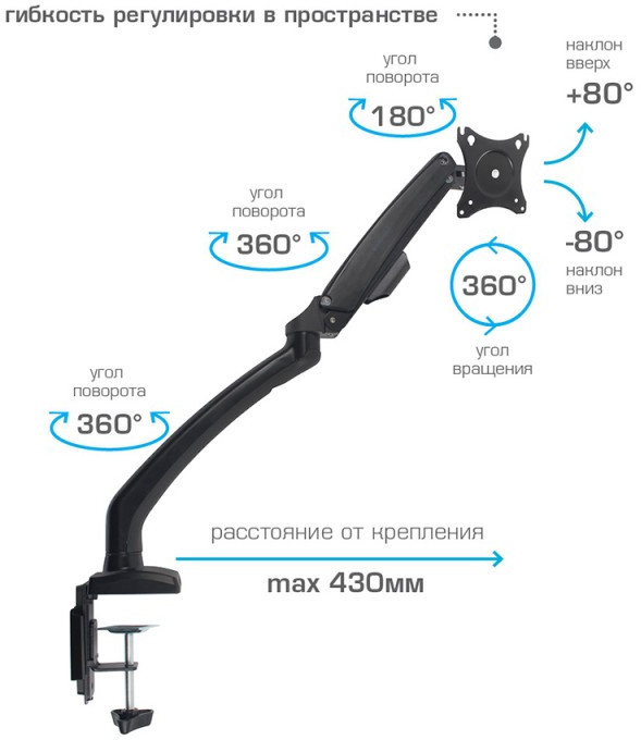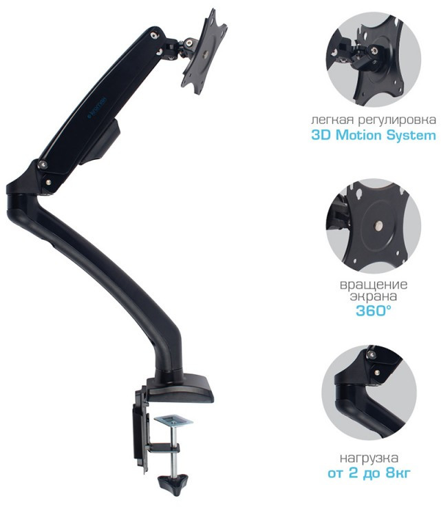- Описание: Настольный держатель для эргономичной регулировки положения дисплея с диагональю от 15 до 32 дюймов