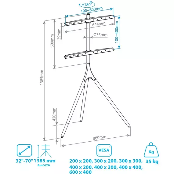 | Поддержка крепления VESA | 200x200, 300x200, 300x300, 400x200, 400x300, 400x400, 600x400 |