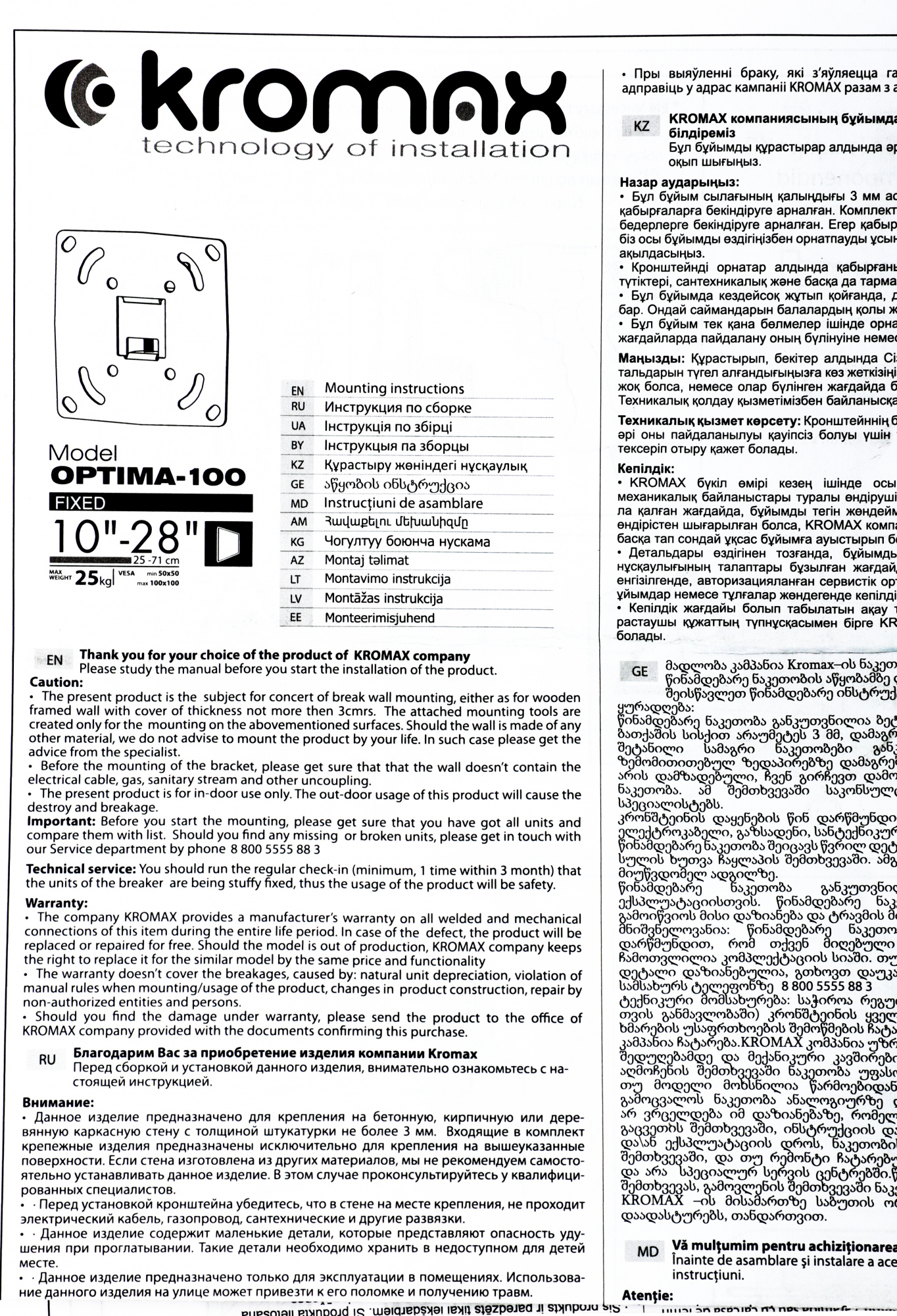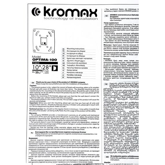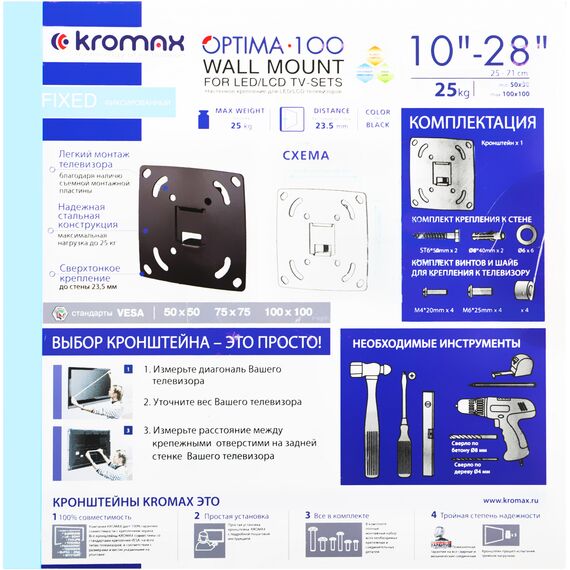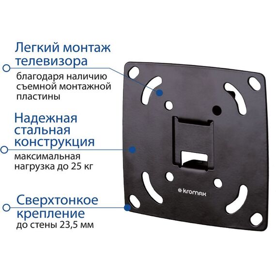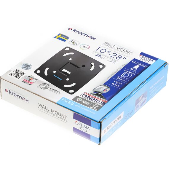 Кронштейн для телевизора Kromax OPTIMA-100 черный 10"-28" макс.25кг настенный фиксированный [28001]