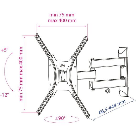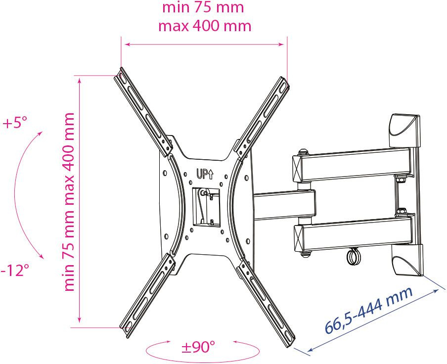 | Подходит для телевизоров c диагональю | 15", 19", 22", 24", 26", 28", 32", 37", 39", 40", 42", 46", 48", 50", 52", 55" |