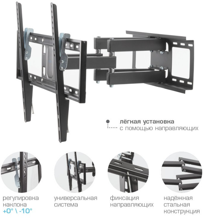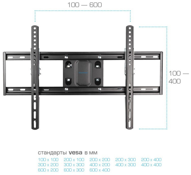 Кронштейн подходит для большинства телевизоров популярных брендов, среди которых Samsung, LG, Sony, Panasonic, Sharp, Toshiba, KIVI, Xiaomi Mi, SUPRA, Hyundai, Erisson, Tcl, Asano, Horizont, JVC, Thomson, HARTENS, Skyworth, HAIER, BBK, AVEL, Витязь, Веко, BQ, DEXP, OZON, SkyLine, Pioneer, Philips, Rolsen, Harper, Hisense, Hitachi, Polarline, Prestigio и других.