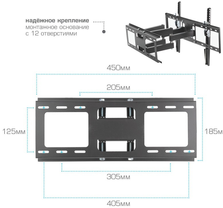 - Нагрузка (кг): 45 Крепежные отверстия (VESA)