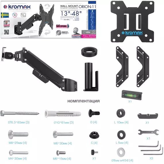 Кронштейн для телевизора Kromax ORION-11 черный 13"-48" макс.20кг настенный поворот и наклон [90529]