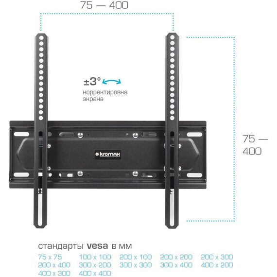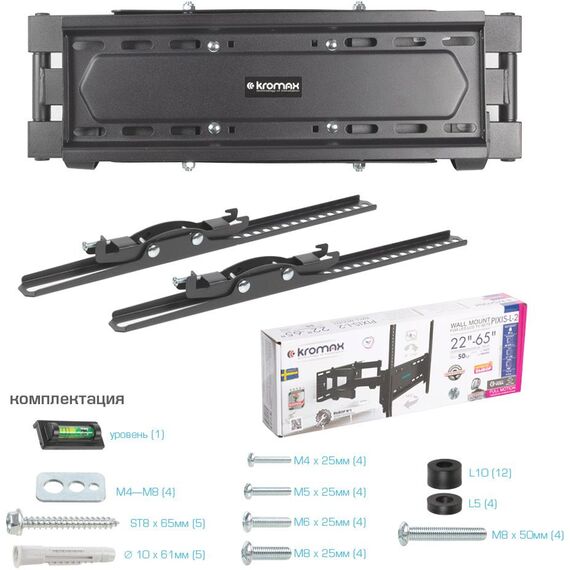 Кронштейн для телевизора Kromax PIXIS-L-2 черный 22"-65" макс.50кг настенный поворот и наклон [90219]