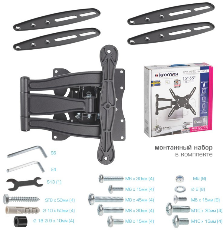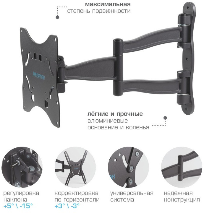 Кронштейн для ТВ Kromax TECHNO-5 grey 15"-42", VESA 400x400 мм [20075]